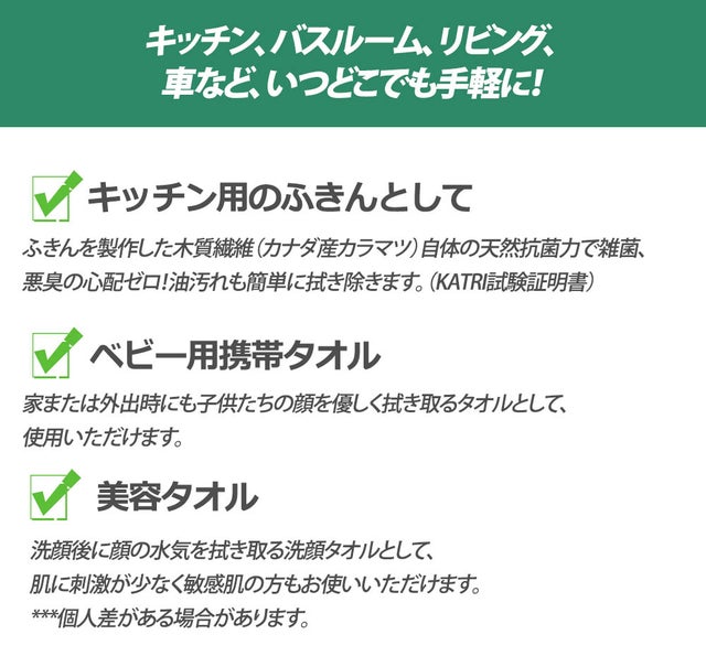 赤ちゃんや小さなお子さんの顔を拭くタオルとしてお使いいただけますし、その他にも美容タオル、キッチン用ふきん、車用など多用途にご使用いただけます。