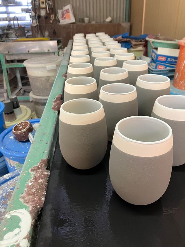 普段は奈良県の工房にて、サンドブラスト工法でグラスやコップ、陶器・磁器などのタンブラー等に名入れ彫刻を施しています。そんな中、もっとスタイリッシュでかわいい美濃焼カップを作りたいと思い、美濃焼の窯にご協力いただき、今回の美濃焼タンブラーが完成しました。
