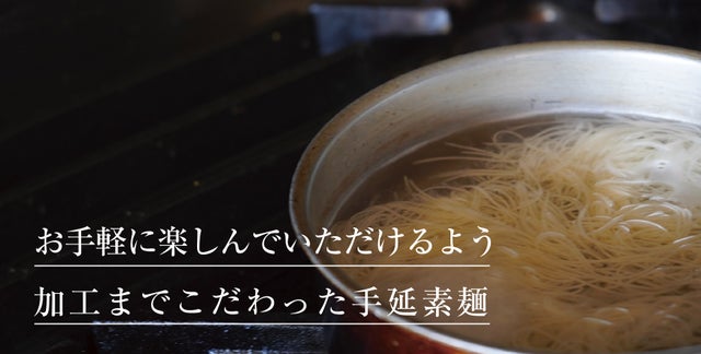 温素麺セットでは、手延素麺の魅力をお手軽に味わえる即席麺とこだわりのスープ、さらにそれらに合う具材を展開しております。