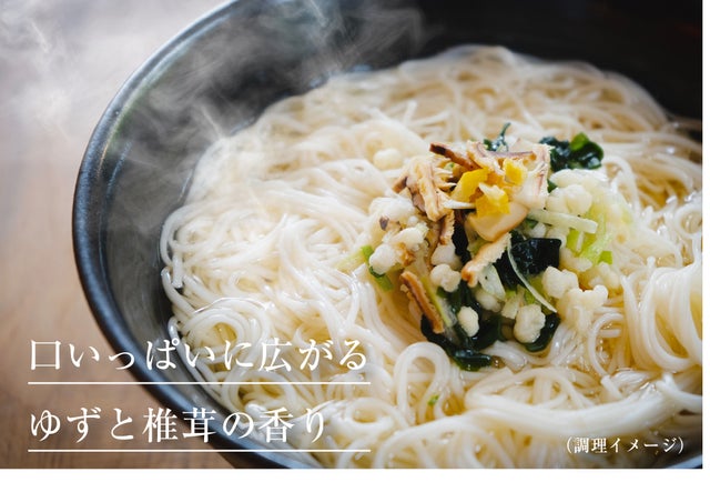 寒い季節といえばゆず!温かい素麺だからこそ楽しめるゆずと椎茸の風味が口いっぱいに広がります