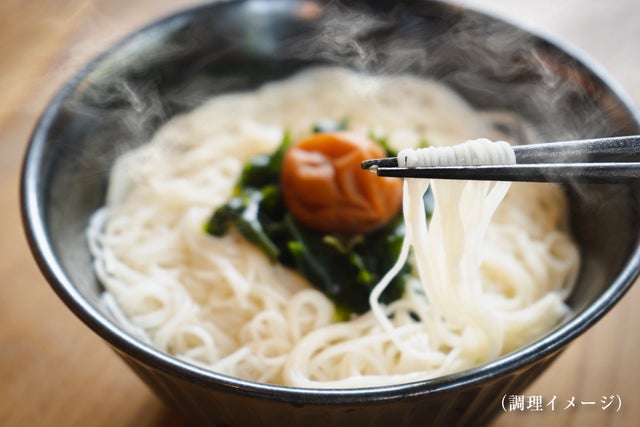 温めることで梅の風味が柔らかくなるので温素麺との相性もばっちり!