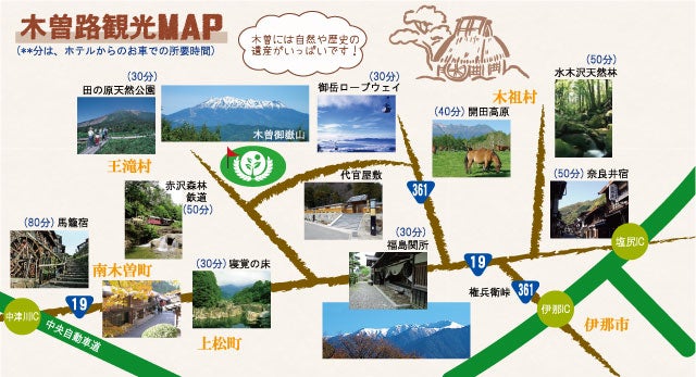 御岳ゴルフ&リゾートホテルは、西に木曽御嶽山、東に中央アルプス木曽駒ヶ岳を望む長野県南西部に位置する木曽町にあります。