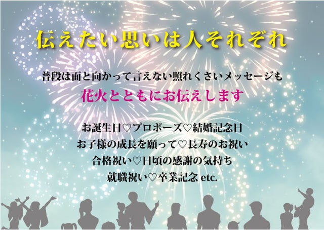 あなたから大切な人への記念の花火として、メッセージとともに打ち上げます!