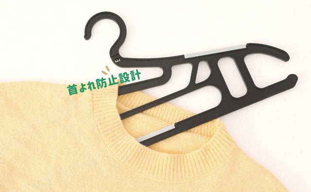 - 首よれ防止設計でトップスを掛けても首回りを伸ばすことなくかけられます。