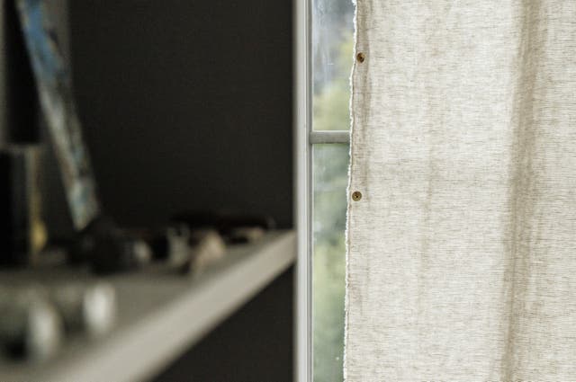 麻らしい、さらりとした洗いざらし感を残しながらも、綿を混合することで柔らかさのある優しい風合いをプラス。光を程よく通しながらも向こう側が見えない、インテリアとして使いやすい丁度良い透け感に仕上げています。