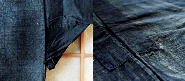 ※本来なら捨ててしまうような大麻をさらに紡いで織り上げた野良着「オクソザックリ」は、地元福井で作られていた独自のもの。写真は山村で着られていた「サックリ」(大野市民俗資料館に展示)