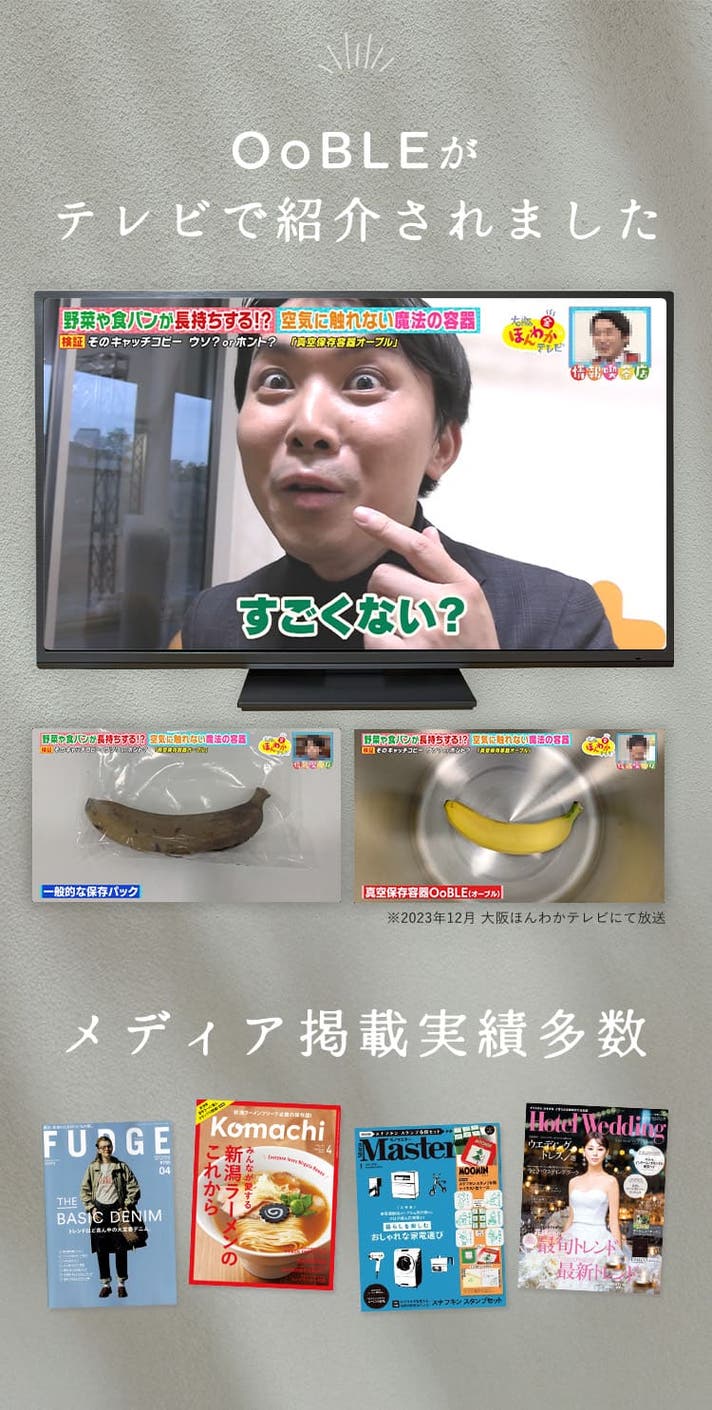 - 応援総額1億7,000万円突破!食材の鮮度をキープする真空保存容器OoBLE
