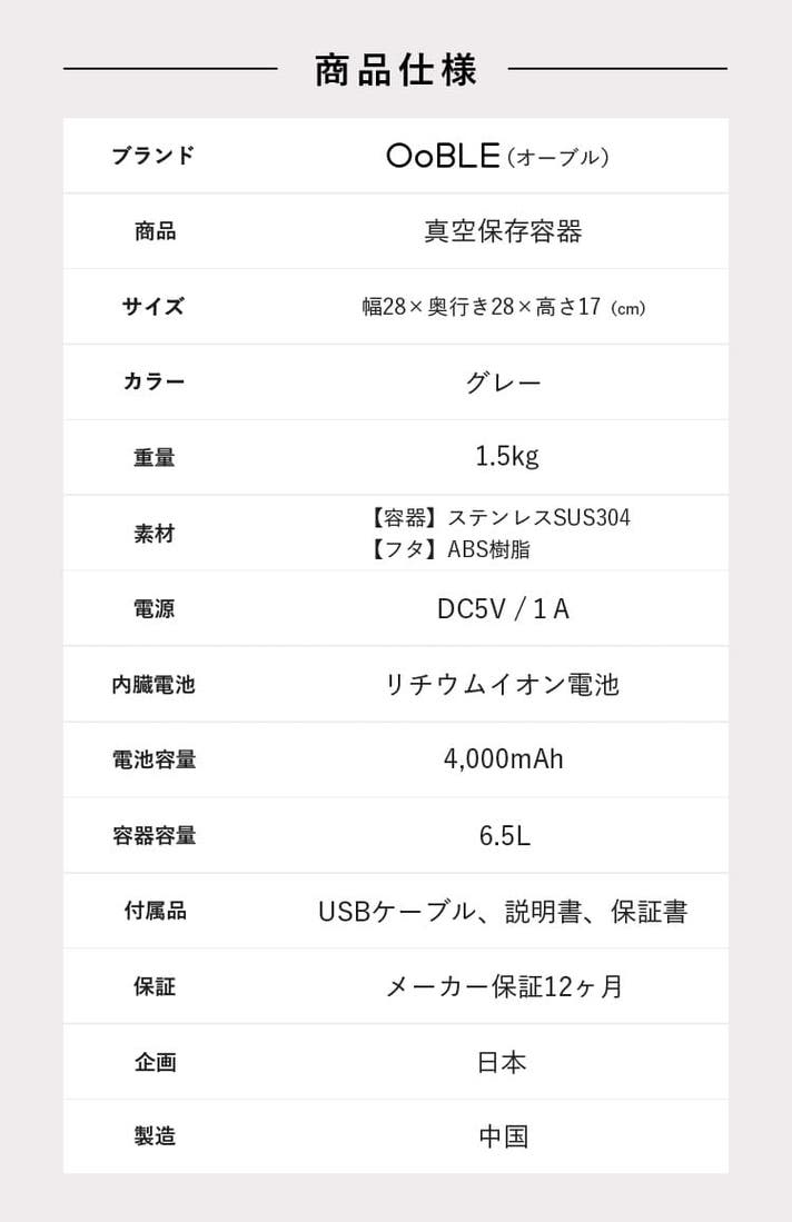 真空保存容器 OoBLE gray×3個