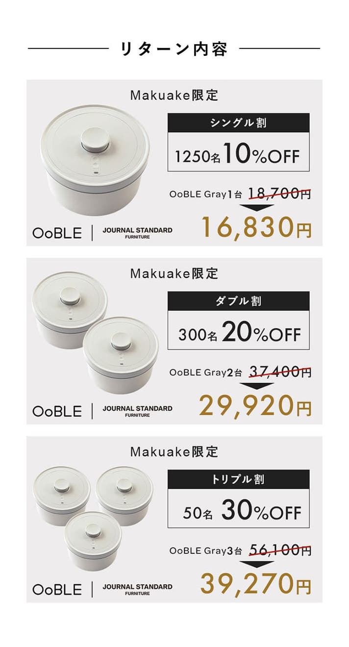 Makuake限定【トリプル割】OoBLE gray×3個