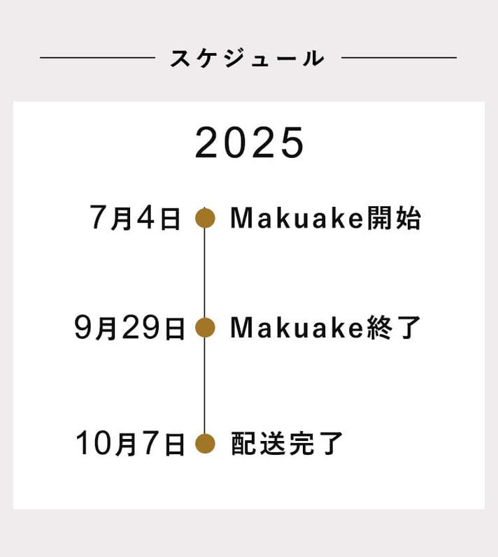 このプロジェクトはAll in型です。目標金額の達成に関わらず、プロジェクト終了日の2025年09月29日までに支払いを完了した時点で購入が成立します。