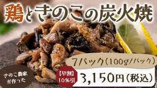 きのこエキスを鶏肉が吸い上げてふっくらジューシーな炭火焼です。