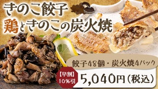 【早割10 %引】『きのこの餃子』48個 『鶏ときのこ炭火焼き』4パック