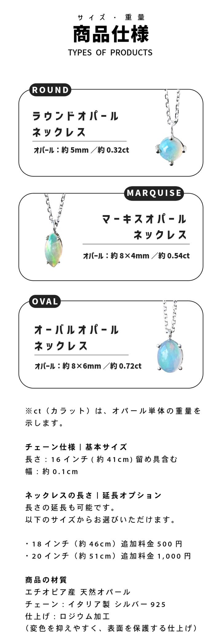 ※ ct(カラット)はオパール単体の重量を示します。