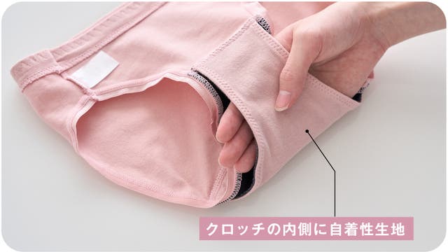 - クロッチの2重の生地の内側どうしが「くっつく」!特殊な生地がナプキンを支えて逃がさない