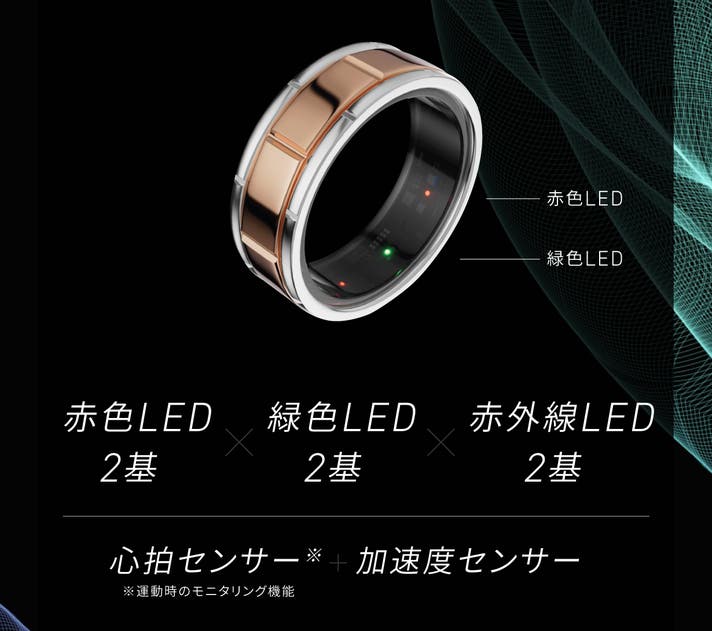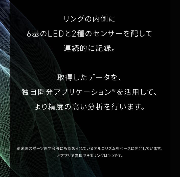 6基のLEDと2種のセンサーで睡眠計測・心拍※・活動ログなど、スマートリングでしか得られない精度。