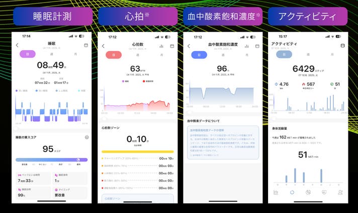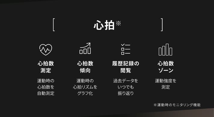 - 【連続モニタリング】睡眠・運動時の心拍・トレーニング記録をセンサーとAIアルゴリズムが正確解析