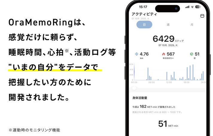 OraMemo Ringは、日々の活動をリアルタイムで可視化されます。
