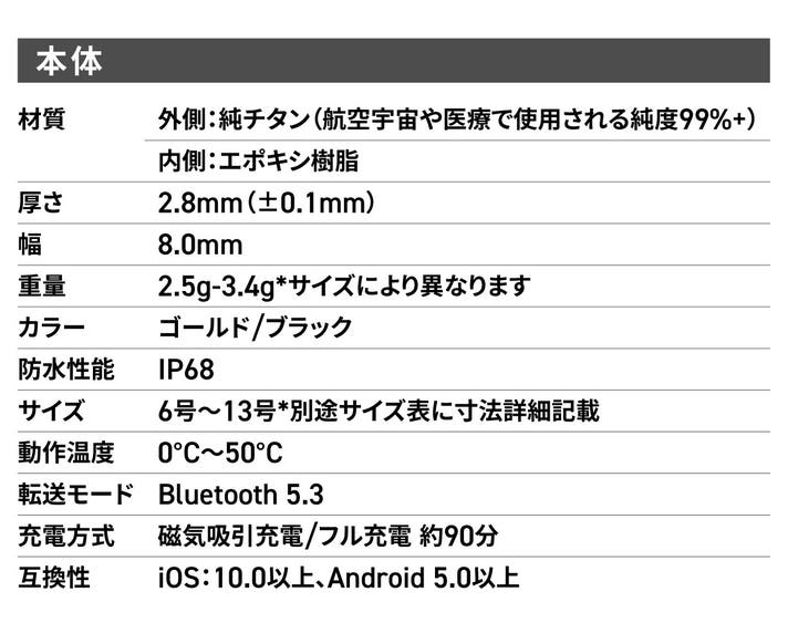 - 【コスパ抜群】純チタン削り出し、約2.5g軽量薄型デザイン、約7日間バッテリー、IP68防水