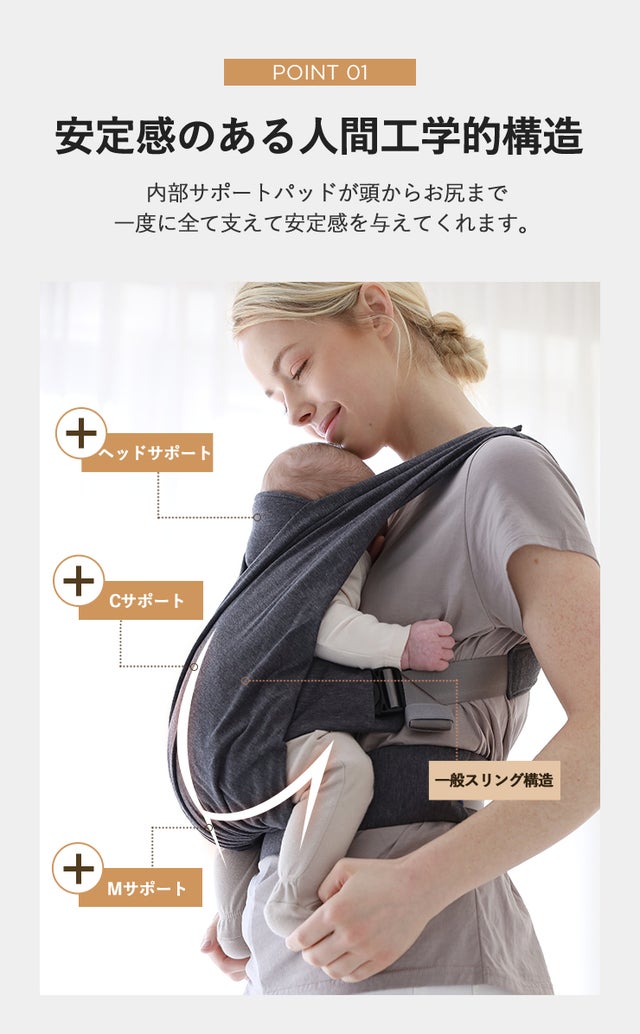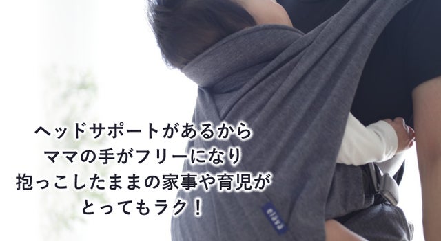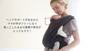 ヘッドサポートが付いているので、忙しいママが抱っこしたままでも家事や育児をできるようにサポートします。