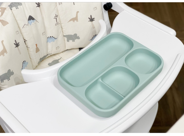 食器のサイズも大きすぎず、吸盤は食器に隠れるので様々なシーンで利用できます。一般的なベビーチェアテーブルにも使用できます。