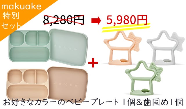 プレートのみのリターンに加え、これから離乳食を始める方におすすめの『moYUUm シリコンスタイ(現在一般販売中)』、歯の生え始めに活躍する『moYUUm 星型歯固め(現在一般販売中)』をプレートとセットにしたリターンもご案内致します。