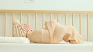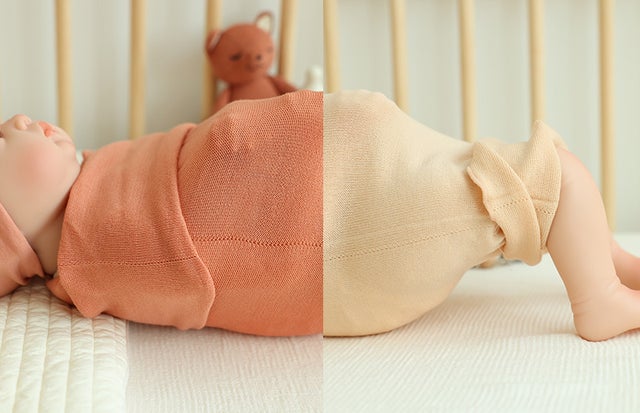 A:モロー反射がおさまると言われる生後4ヶ月頃以降は、お子様の成長に合わせて、寝冷え防止の対策として手足を出してあげれば寝返りが始まる生後5~6ヶ月頃までご使用いただけます。