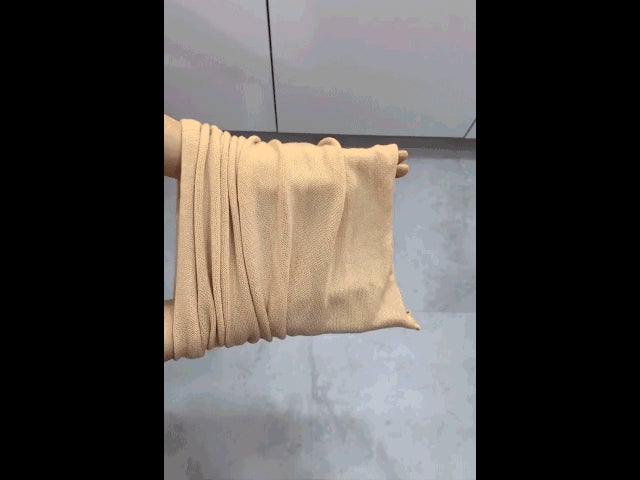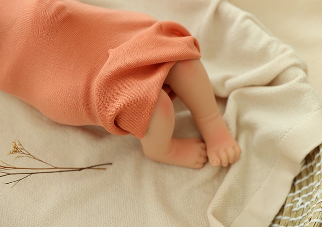 ベビースワドルは薄い原糸で組まれ赤ちゃんが手で押し伸ばしてもすぐに元に戻るように作られています。