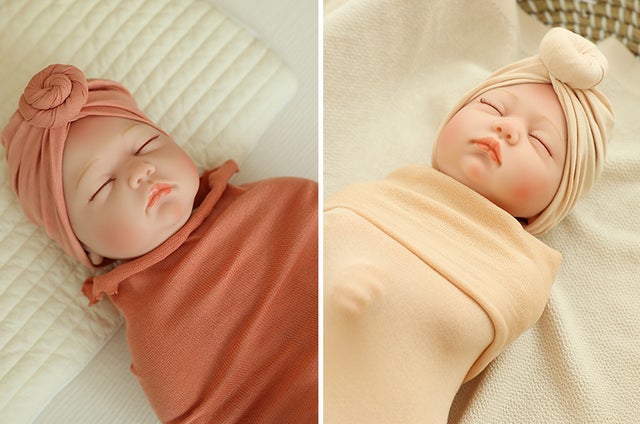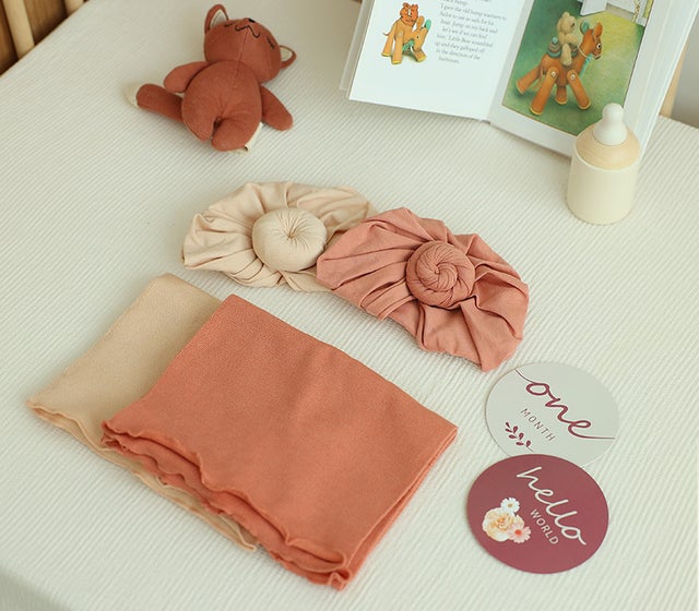 【ペア割 17%OFF】お好きなカラーのベビースワドルとヘアバンドセット2個