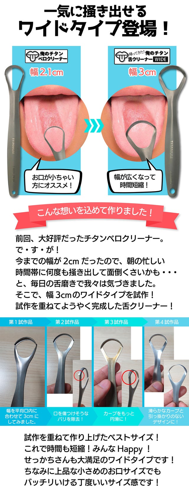 「Makuake(マクアケ)」は、実行者の想いを応援購入によって実現するアタラシイものやサービスのプラットフォームです。このページは、 プロダクトカテゴリの 「【俺のチタン舌クリーナーWIDE】抗菌チタン99.6%!ワイドになって新登場!」プロジェクト詳細ページです。