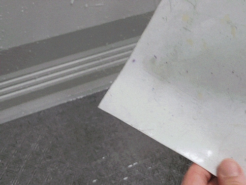手でシートを軽く擦りながら洗うと、ホコリや異物が自然に取り除かれ、水気が渇くことで粘着力が再び元通りになります。