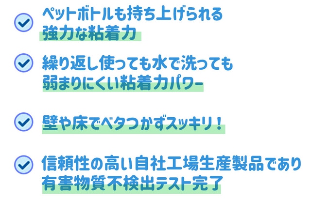 - 使い捨て NO ! 繰り返し使える YES!水で60,000回洗っても粘着力はそのまま!