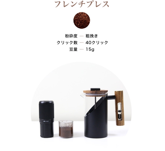 細いエスプレッソ粒子から粗いフレンチプレス粒子まで様々な大きさの粉砕が可能に。好みの粒度で調節が可能なため、理想のコーヒー粉を再現することができるでしょう。