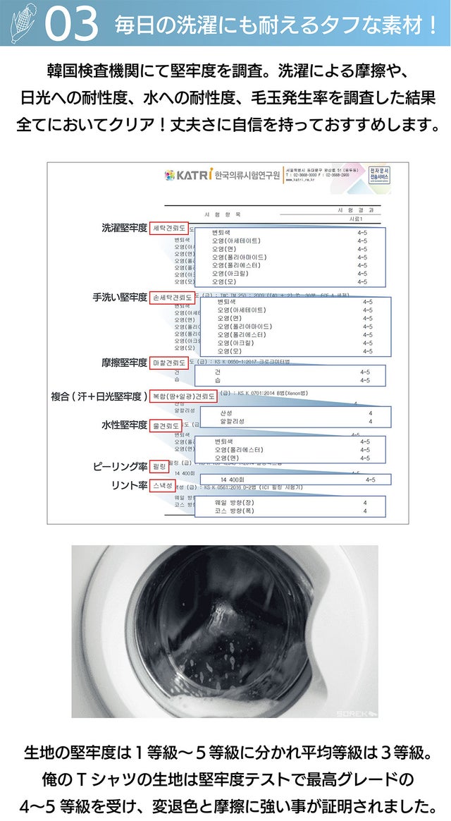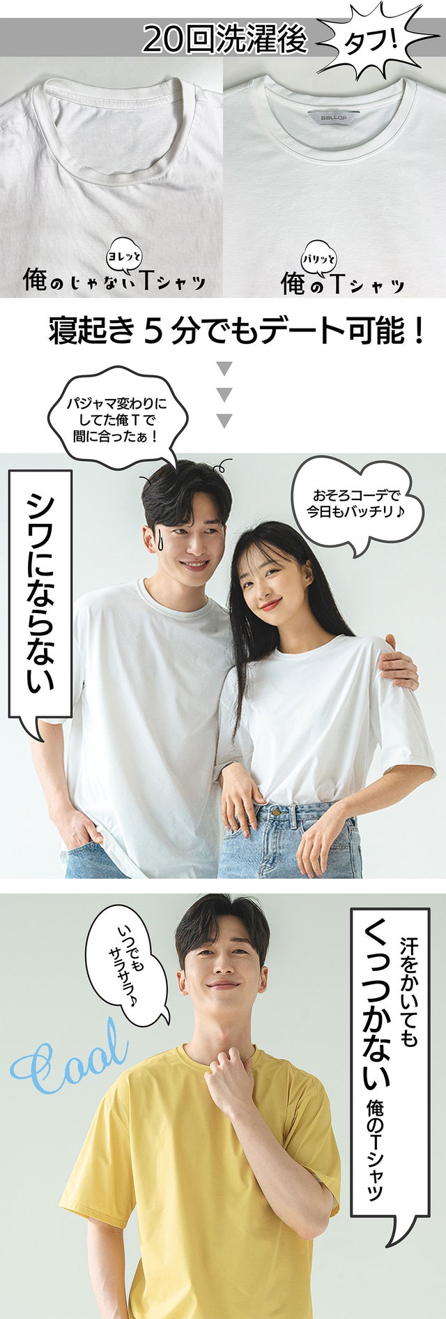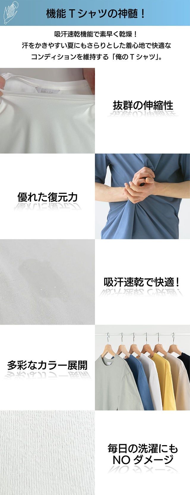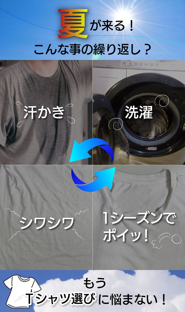 - ヘビーな洗濯でもへっちゃら!タフボディ!特殊生地で汗をかいても肌にへばりつかない!クールT