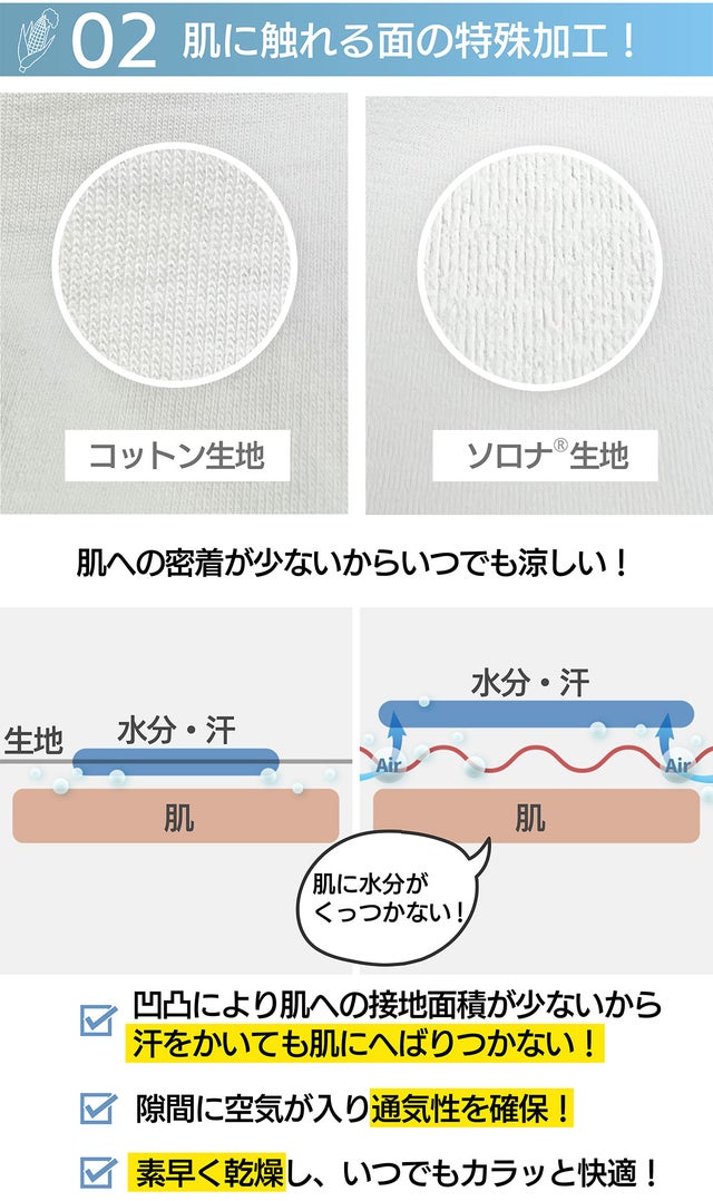 汗のかきやすい夏や暑い日に、心地よい着心地を。