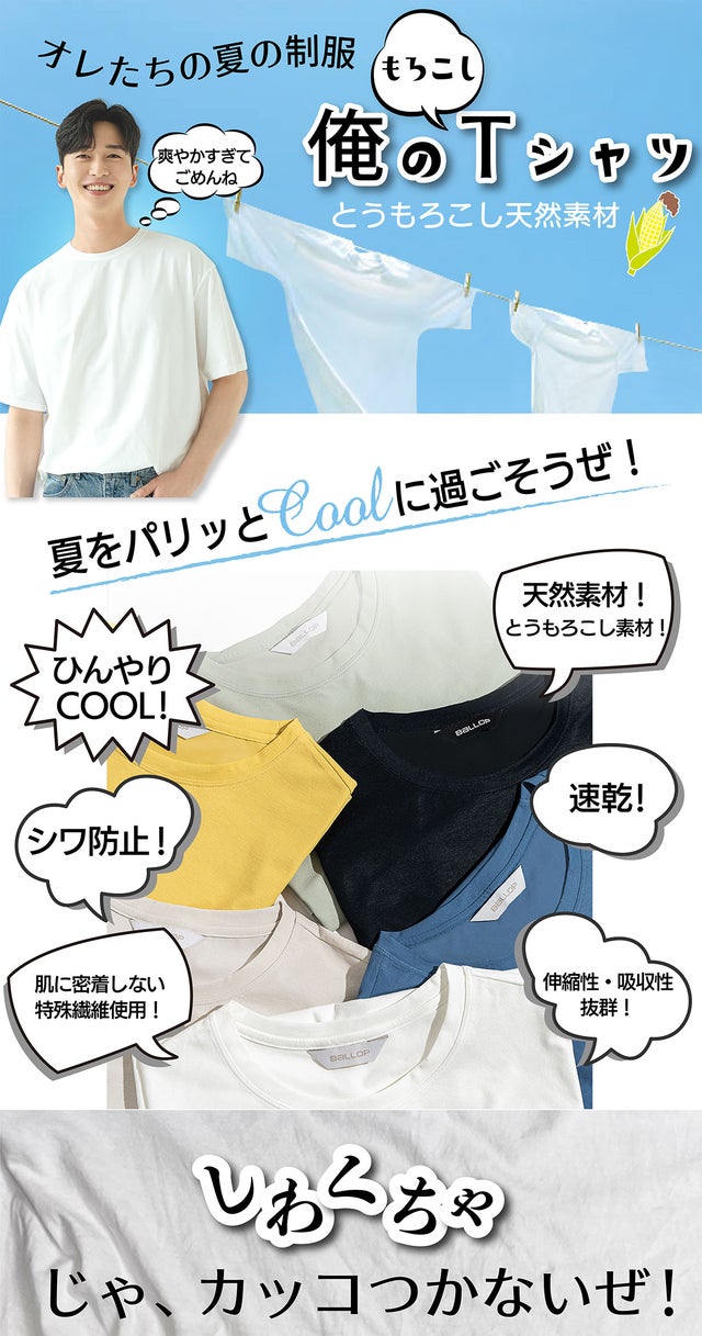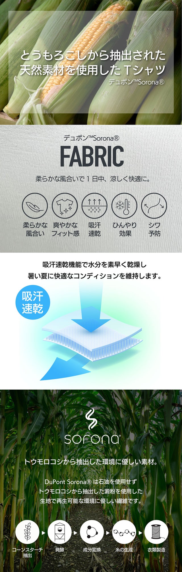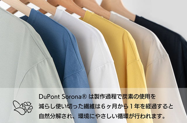 - とうもろこしから抽出した天然素材でハリとコシがありながらソフトな肌触りで伸縮性抜群のTシャツ!