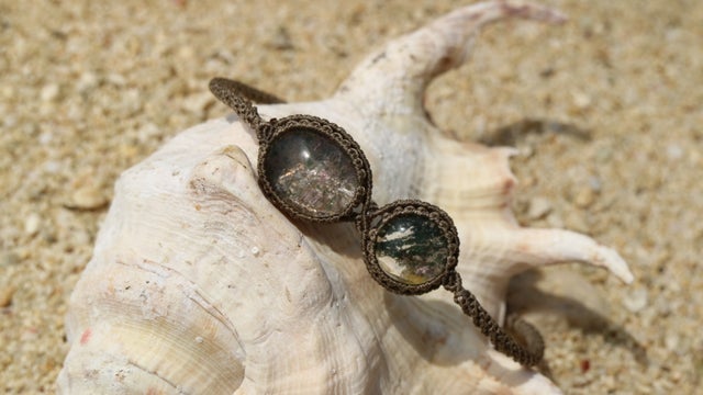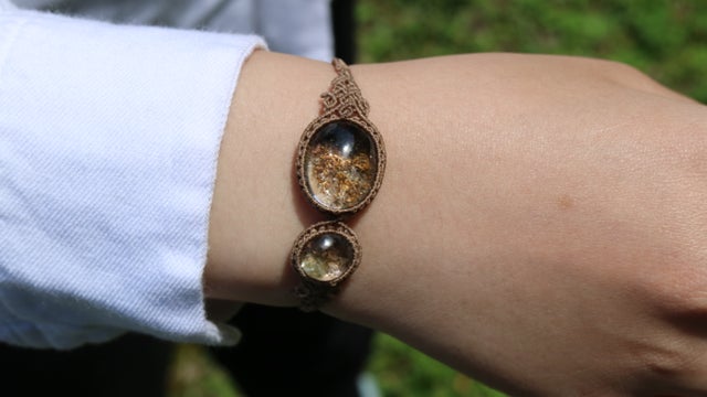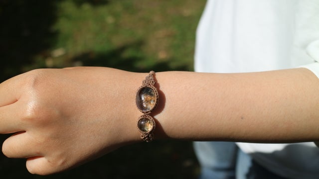 - 限られた生産地で採掘されたガーデンクォーツを二粒使用したマクラメ編みブレスレット