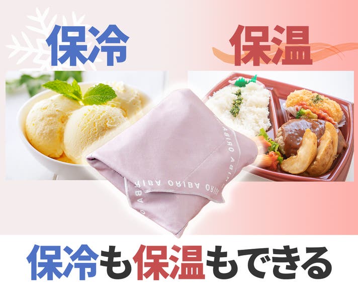 実は保温もできる!内側のアルミシートが熱を逃しにくく、あたたかいものを包めます。