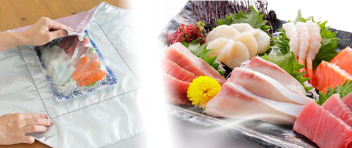 「保冷ふろしき」は、お肉やお刺身など冷やしたいものだけをサッと包めるのが魅力。