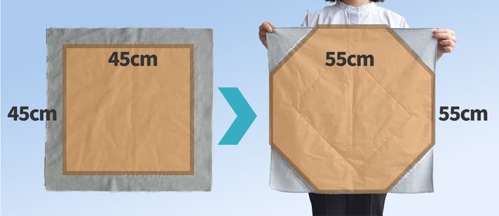 ただ大きくするのではなく、使いやすさにこだわりました。ふろしき自体がかさばらないように、内側のアルミシートを広げて保冷面積は大きく確保。そのうえで、布同士がくっつく限界のサイズに調整しています。