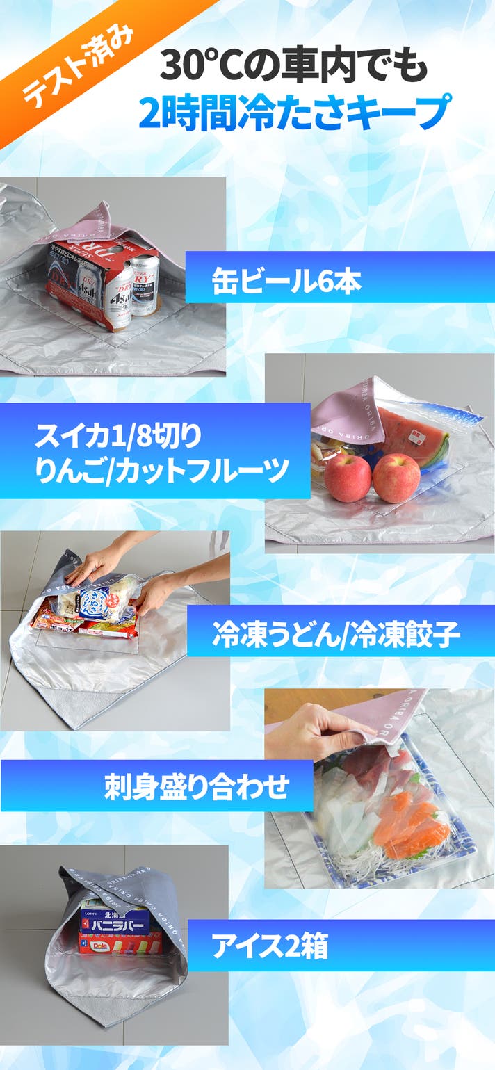 保冷ふろしきがあれば買い物後も2時間半は持ち歩けます。