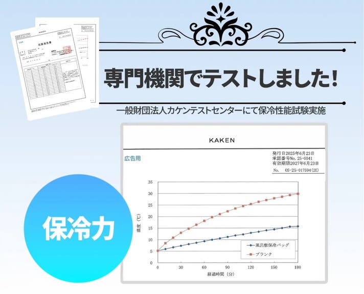 第三者機関(カケン)による、保冷ふろしきの検査結果です。