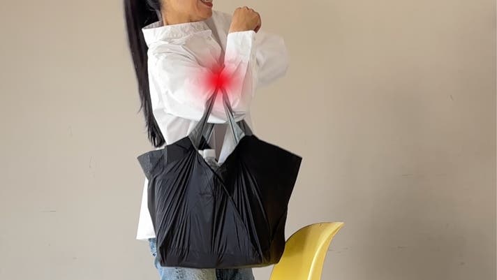 細い持ち手が腕に食い込んで、痛みやしびれの原因に。