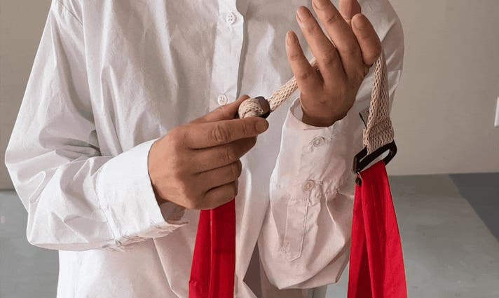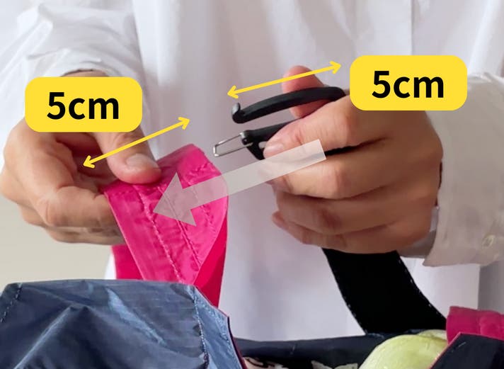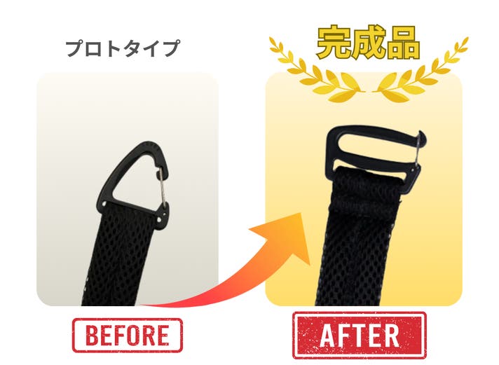 ショルダー用のフックをいくつも取り寄せて、試作を重ねました。終盤は、丈夫なカラビナ型フックに絞り、幅広の持ち手にも対応できるように1ミリ単位で調整を繰り返しました。
