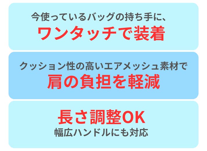 重たい荷物を、ふわっと肩で支える新しい選択肢です。