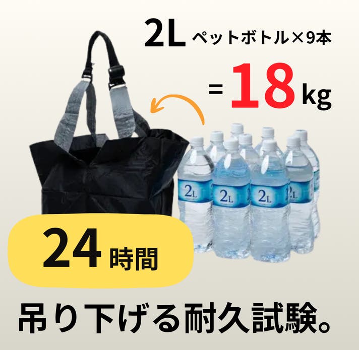 普段の買い物でここまでの重さを持つことはほぼありませんが、ふわふわショルダーはそれ以上の負荷でもびくともしない強さを備えています。