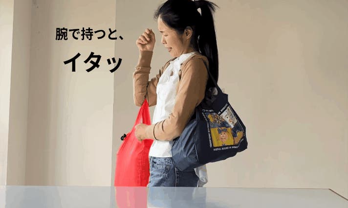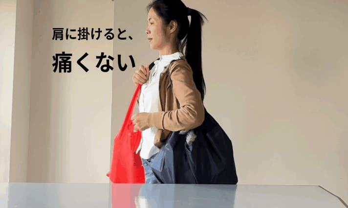 腕にくい込んでいた重たいエコバッグが、ふわっと肩掛け仕様に。
