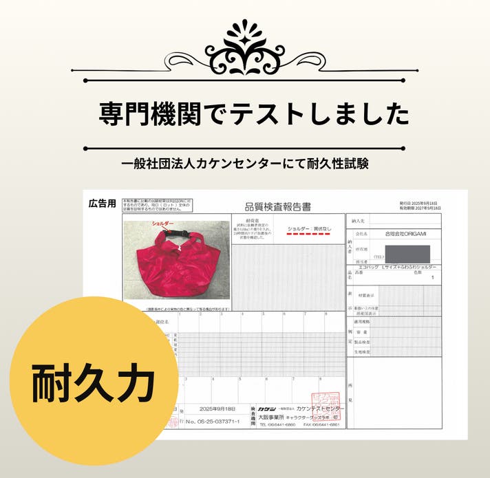 そこで私たちは、ふわふわショルダーの耐久性を第三者機関で検証しました。