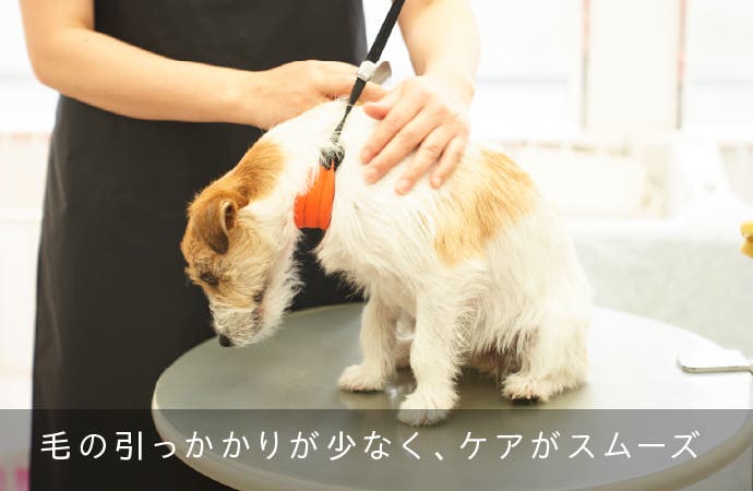 引っかかりが少ないこともあり、ワンちゃんも快適そうな様子。「小回りが利くので、デリケートな首まわりのケアに良いと思います」と、おっしゃっていました。