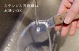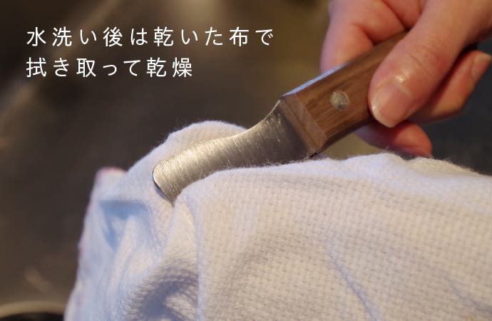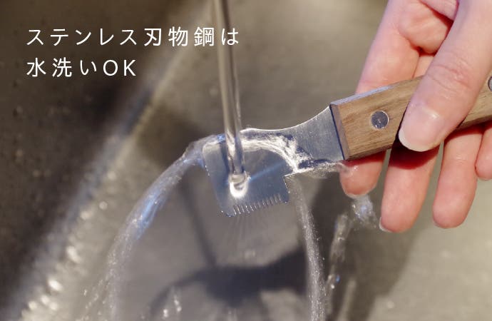 ステンレス刃物鋼のナイフは水洗いが可能です。洗った後は、必ず乾いた布で水分を拭き取り、乾燥させてから保管してください。定期的なメンテナンスとして、研磨剤や油を塗布することで、切れ味を維持し、サビを防ぐことができます。