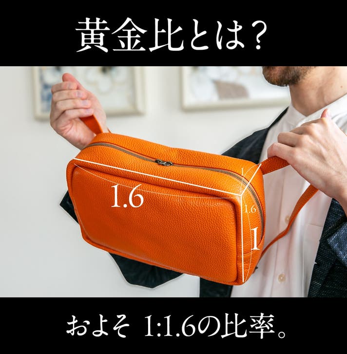 このボディバッグは、縦・横・マチの比率を黄金比に基づいて設計。人の目に自然で心地よく映るフォルムを追求し、どの角度から見ても美しいシルエットを実現しました。